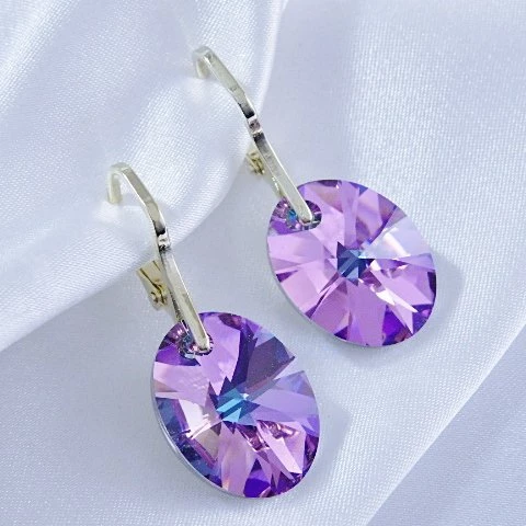 Krásné výrazné náušnice Swarosvki oválky o velikosti 18x 14mm nabízíme v barvě Vitrail Light ( měnící růžová) Pohodlné zapínání na klapku, které je povrchově upraveno zlacením 14 kar. Celková délka náušnic se zapínáním : 35mm Chirurgická ocel je vhodná pro alergiky na běžné kovy . 028