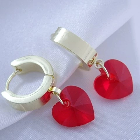 Krásné náušnice Swarovski srdíčka o velikosti 10mm v barvě Light Siam ( červená ). Zapínání z chirurgické oceli je opatřeno povrchovou úpravou zlacení 14kar. Zapínání kroužek průměr 13mm , šířka : 4mm - Celková délka náušnic - 25mm Náušničky jsou jemné a hodí se také pro slečny od 7 let Chirurgická ocel je vhodná pro alergiky na běžné kovy .
