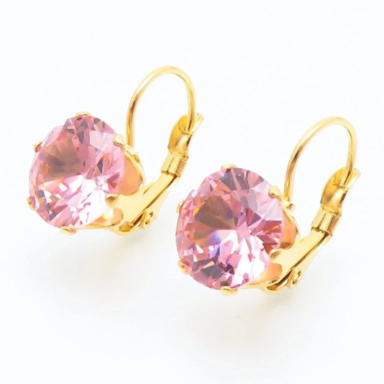 Náušnice chirurgická ocel zlaté s růžovým kamínkem