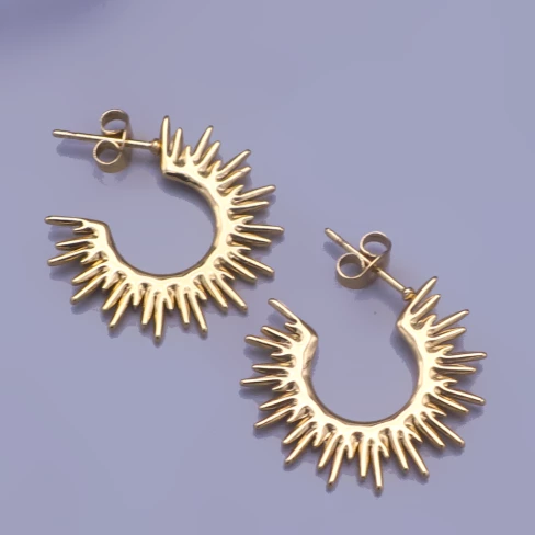 Rozzařte svůj vzhled s těmito originálními náušnicemi ve tvaru slunečních paprsků! Design inspirovaný sluncem přináší do vašeho outfitu energii, radost a nádech luxusu. Zlatá povrchová úprava dodává náušnicím elegantní a moderní vzhled, který krásně ladí jak s každodenním stylem, tak s večerním outfitem.