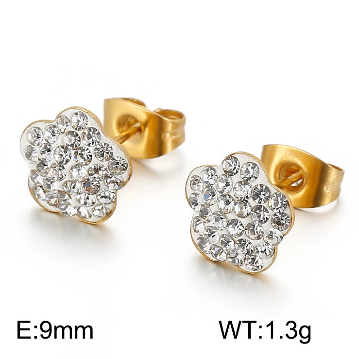 Náušnice z chirurgické oceli klasické ve tvaru kytiček,bílo-zlaté s menšími kamínky.