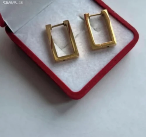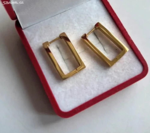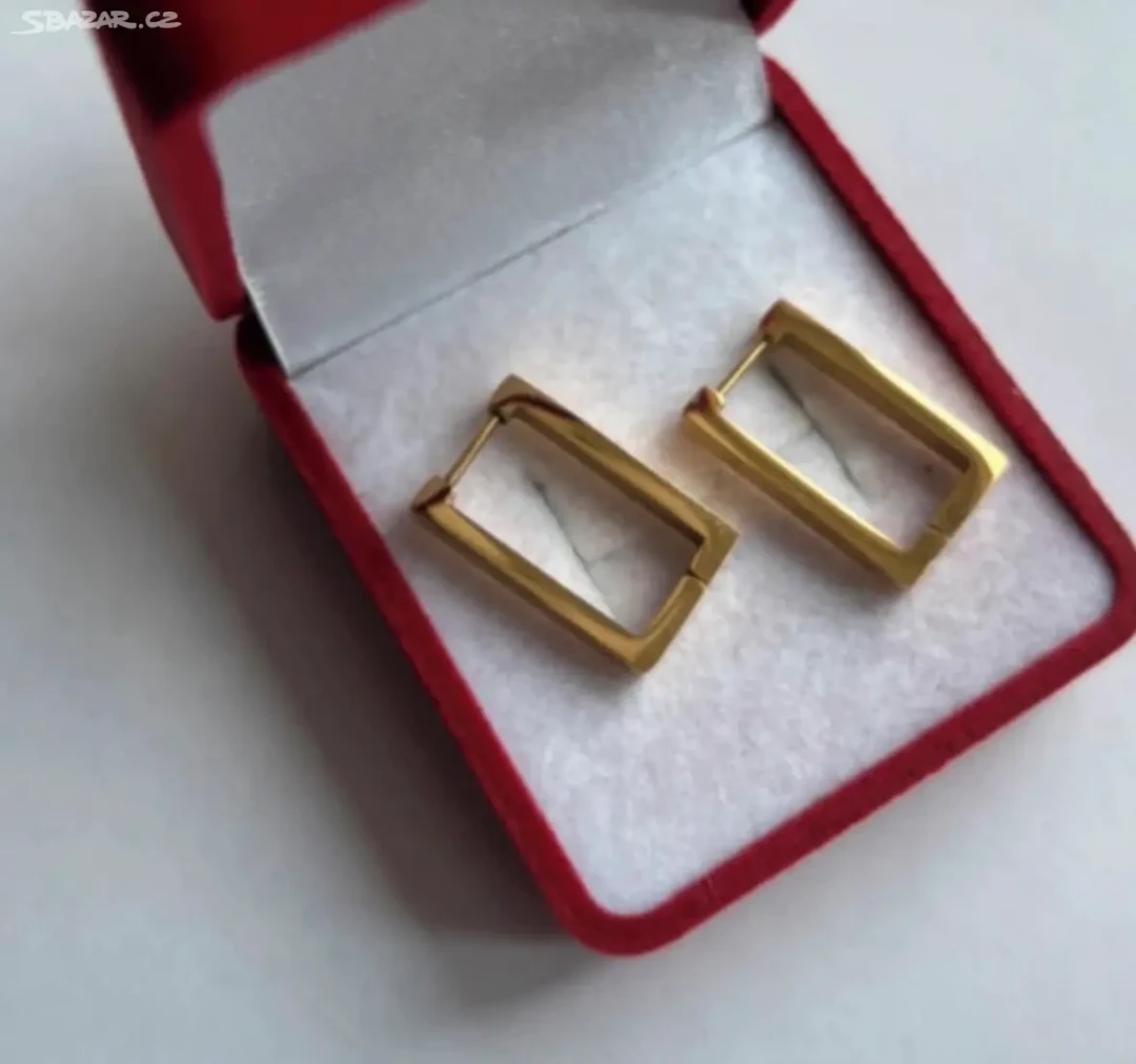 Zlacené obdélníkové náušnice z chirurgické oceli 316L s povrchovou úpravou zlacení