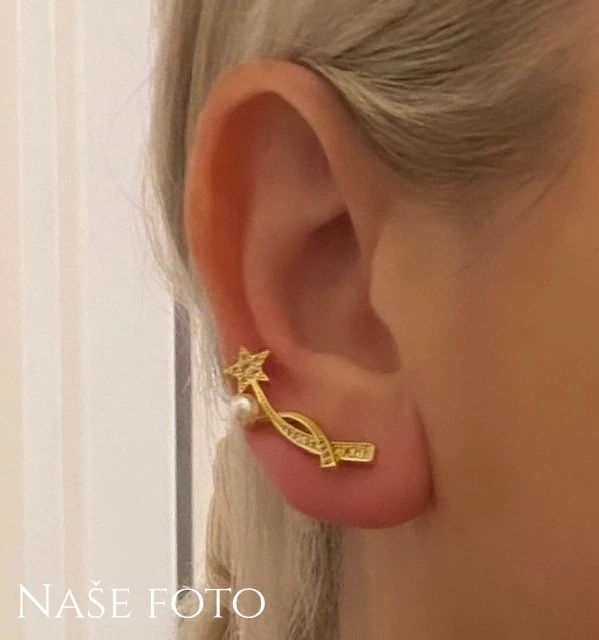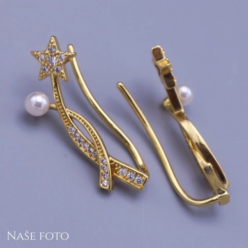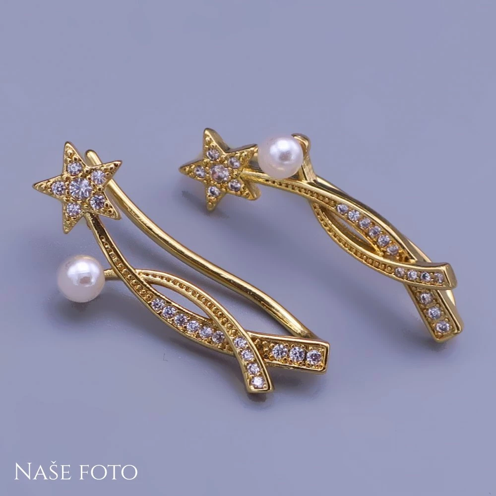 Pozlacené záušnice z chirurgické oceli s čírými zirkony a bílou perličkou 3mm.