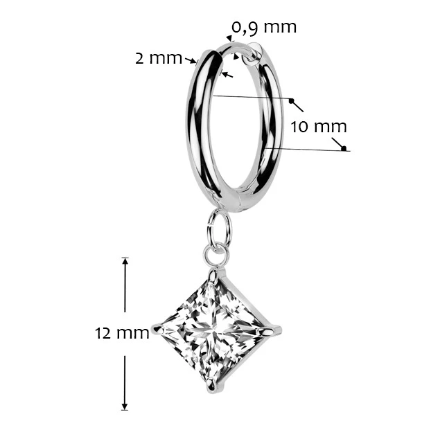 Ocelové kruhové náušnice se zavěšenými hranatými zirkony čiré barvy