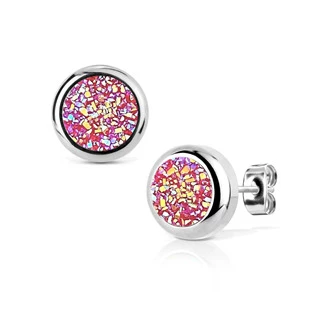 Ocelové náušnice dekorované růžovým akrylátovým kamenem