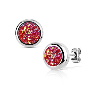 Ocelové náušnice dekorované růžovým akrylátovým kamenem