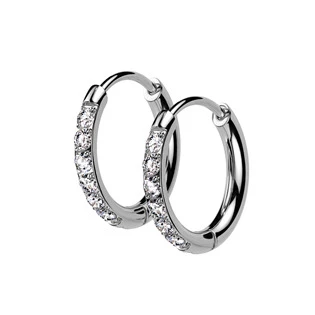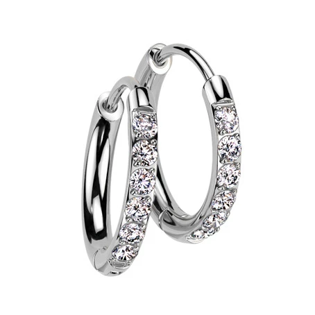 Ocelové náušnice kruhy dekorované kubickými zirkony čiré barvy