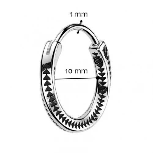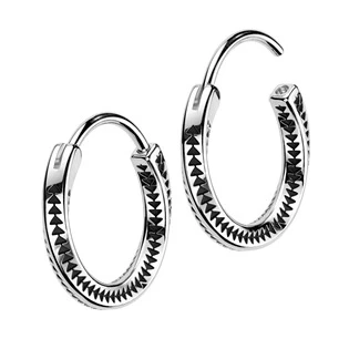 Ocelové náušnice ve tvaru kroucených kruhů dekorovaných drobným dekorem s trojúhelníky