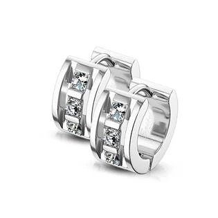 Ocelové náušnice kroužky zdobené zirkony čiré barvy