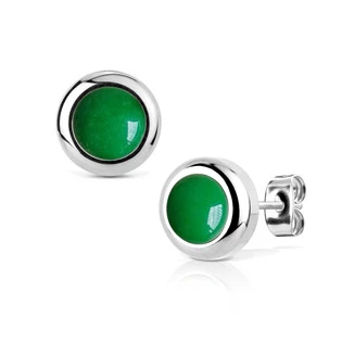 Ocelové náušnice dekorované kamenem Nefrit