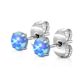 Ocelové náušnice dekorované kulatými syntetickými opály velikosti 3 mm
