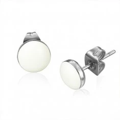 Náušnice z chirurgické oceli mají kulatý tvar a lesklý povrch. V přední části náušnic je v objímce uchycena zaoblená glazura bílé barvy. Náušnice se zapínají na kolík a brzdítko.