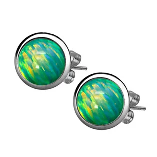 Ocelové náušnice zdobené syntetickými opály