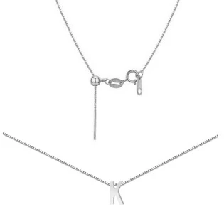 Ocelový náhrdelník čtvercového profilu s možností libovolně nastavitelné délky 40 až 45 cm. Náhrdelník je zdobený přívěškem ve tvaru tiskacího písmene