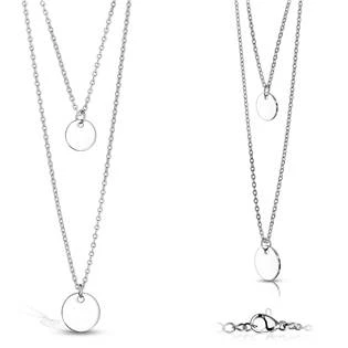 Dvojitý ocelový náhrdelník se dvěma kruhovými přívěšky