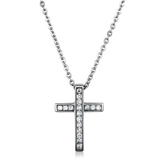 Ocelový řetízek s přívěškem ve tvaru křížku posázeného zirkony