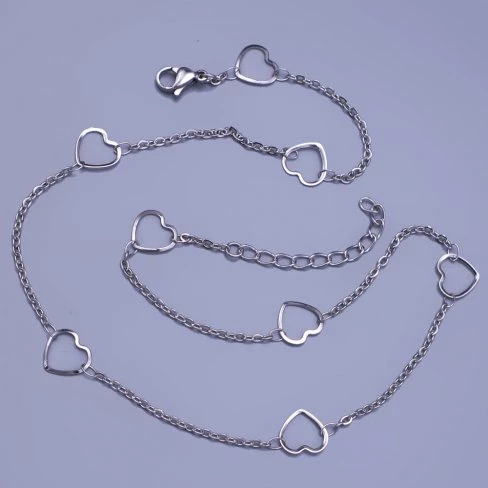 Řetízek z leštěné chirurgické oceli je po celém obvodu zdobený srdíčky o velikosti 10mm.