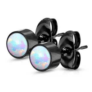 Puzetové náušnice zdobené syntetickými opály bílé barvy Ocelové náušnice jsou vyrobeny z chirurgické oceli s jakostním označením 316L Parametry materiál chirurgická ocel povrchová úprava černá druh kamene opál typ uzávěru puzeta rozměr kamene 4 mm rozměr náušnic 5 mm