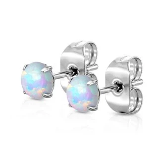 Ocelové náušnice dekorované kulatými syntetickými opály bílé barvy Náušnice jsou vyrobeny z chirurgické oceli s jakostním označením 316L Parametry materiál chirurgická ocel povrchová úprava lesklá druh kamene opál typ uzávěru puzeta rozměr kamene 3 mm, 4 mm, 5 mm