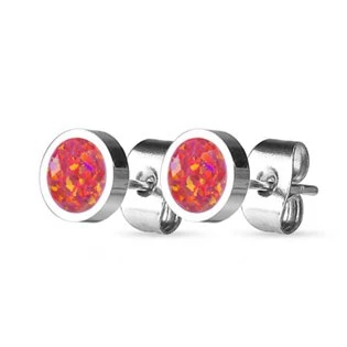 Ocelové náušnice s opály 6 mm > varianta Světle červená
