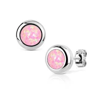 Ocelové náušnice zdobené syntetickými opály modré barvy Náušnice jsou vyrobeny z chirurgické oceli s jakostním označením 316L a mají lesklou povrchovou úpravu Parametry materiál chirurgická ocel povrchová úprava lesklá druh kamene opál rozměr kamene 6 mm šíře náušnice 8 mm