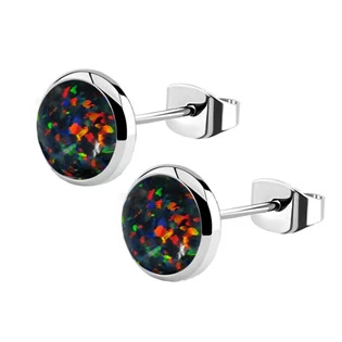 Ocelové náušnice zdobené syntetickými opály