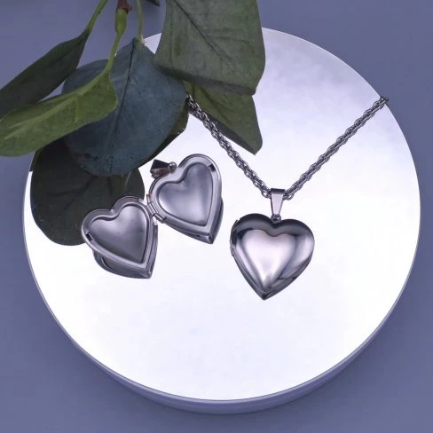 Medailonek, hladké oboustranné srdíčko z chirurgické oceli.