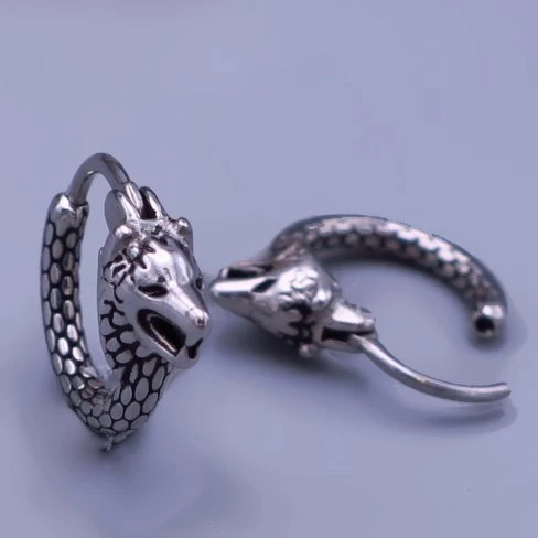 Pánská moderní náušnice z chirurgické oceli 3D kroužek drak.