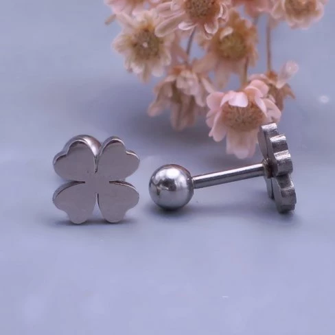 Piercingová náušnice čtyřlístek z leštěné chirurgické oceli.