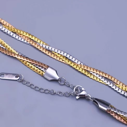 Krásný řetízek z chirurgické oceli, je pletený z řetízků tří barev ( ocelová, zlacená, zlacená golg rose)