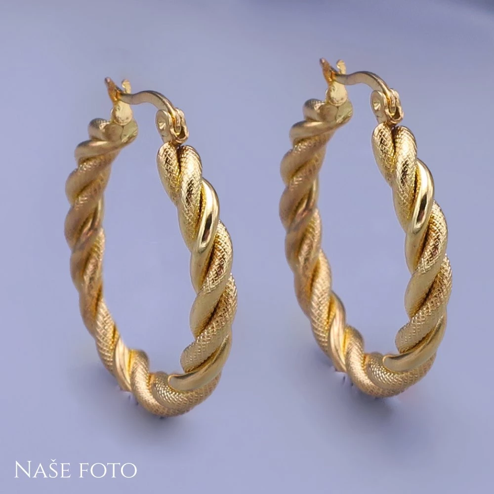 Typ náušnic Kruhy Zapínání náušnic Zapínání tyčinkou Délka náušnic 26 - 30 mm Barva Zlatá Příležitost Denní nošení Velikost Střední Styl Moderní Dárek pro Pro ženy, Pro kamarádku, Pro sestru 30034