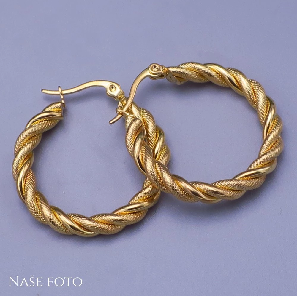 Krásné moderní pozlacné náušnice kruhy z leštěné chirurgické oceli.