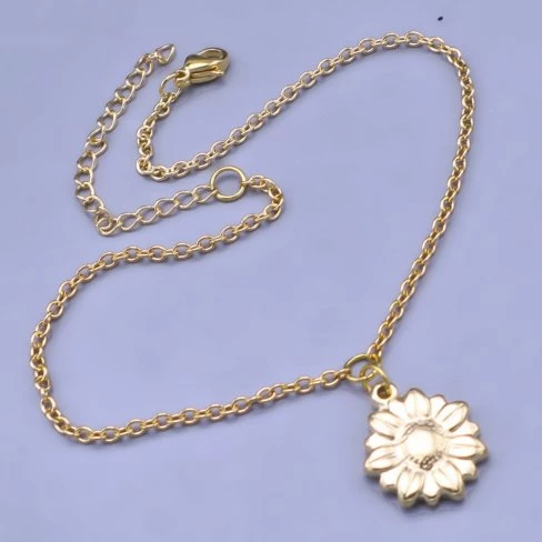 Náramek na nohu z chirurgické oceli, zdobí přívěsek kytička o velikosti 14mm.