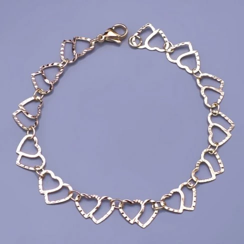 Náramek z chirurgické oceli, je složený z obustranných srdíček o velikosti 14x9mm.