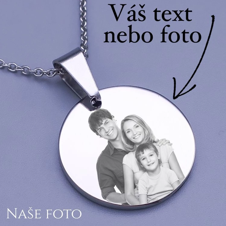 Přívěsek z leštěné chirurgické oceli kolečko, je vhodný pro gravírování.