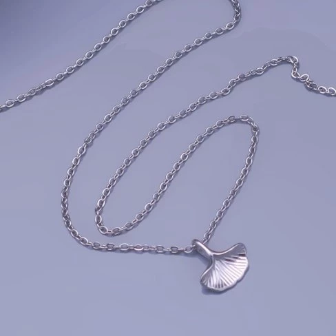 Jemný přívěsek z leštěné chirurgické oceli list ginkgo biloba, symbolizuje duševní rovnováhu.