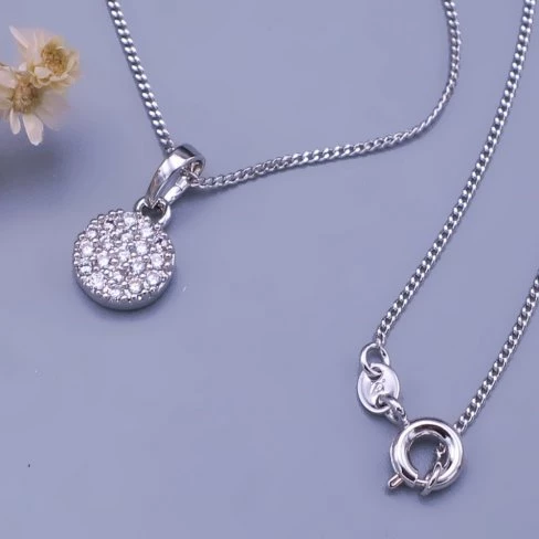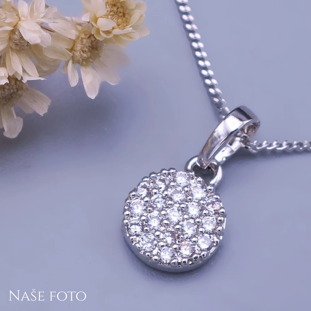 Přívěsek z chirurgické oceli kolečko je zdobeno čirými krystalky Swarovski s výrazným brusem.
