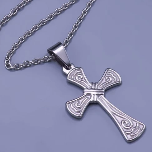 Přívěsek z leštěné chirurgické oceli velký kříž.