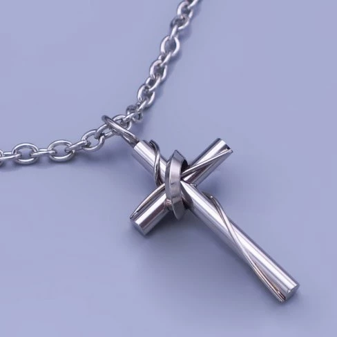 Přívěsek z leštěné chirurgické oceli oboustranný kříž.
