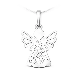 Elegantní stříbrný přívěsek ve tvaru anděla zaujme minimalistickým designem doplněným o jemné dekorativní detaily. Prořezávaný vzor na těle anděla dodává šperku lehkost a zajímavou strukturu, která krásně vynikne při nošení.