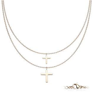 Dvojitý dámský ocelový náhrdelník dekorovaný dvěma křížky Šperk je vyroben z chirurgické oceli 316L Parametry materiál chirurgická ocel Velikost křížku Větší 18x19mm Menší 12x13mm délka náhrdelníku 48 cm