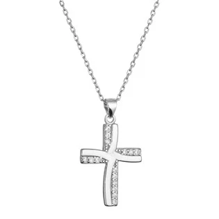 Centrálním motivem je křížový přívěsek bohatě zdobený třpytivými zirkony v barvě crystalu, které dokonale odrážejí světlo a vytvářejí okouzlující záři. Jemný řetízek je Ideální doplněk pro společenské i každodenní nošení, vhodný jako dárek pro ženy i dívky, které mají rády jemné a elegantní šperky.