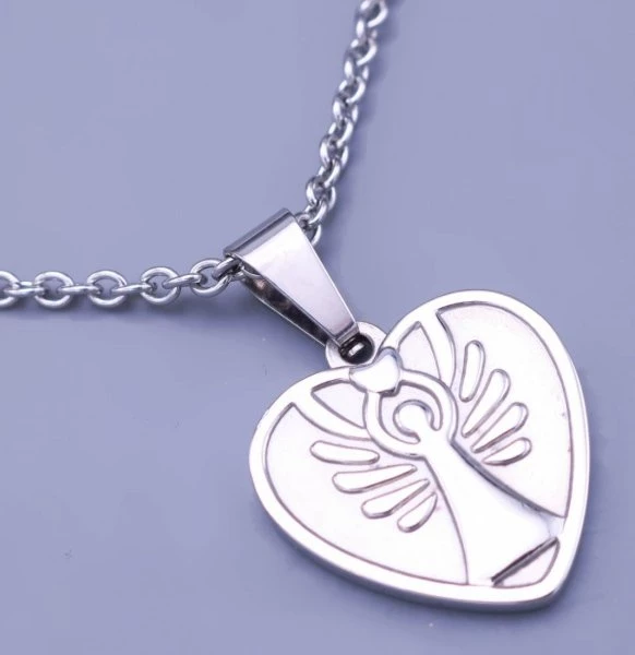Přívěsek z leštěné chirurgické oceli srdíčko se symbolem andělky. Velikost 25mm. Součásti přívěsku je ocelový řetízek, který si můžete vybart z šířek 2mm, 3mm. Délka na výběr od 40-45-50-55-60cm 22310