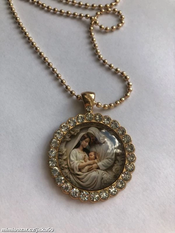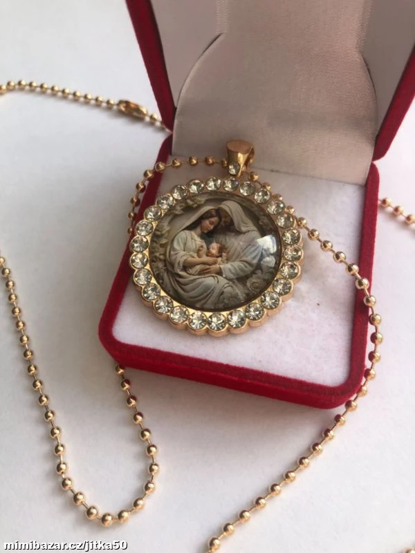 Elegantní zlacený náhrdelník s desingem Panny Marie s Ježíškem z chirurgické oceli