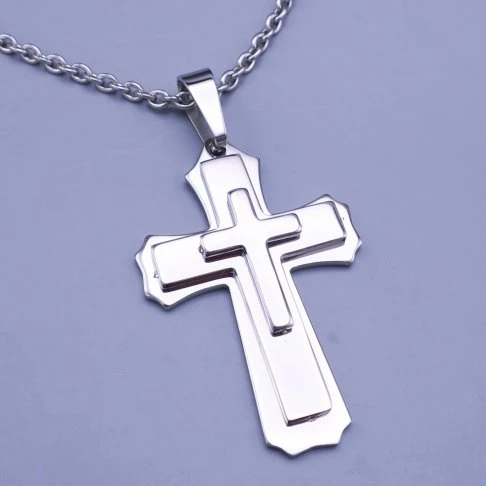 Luxusní pánský přívěsek s řetízkem z chirurgické oceli - kříž. Přívěsek je hladký, bez rýhovaní a zdobení. Je tvořen spojením tří křížů odlišné velikosti. Součástí přívěsku je také řetízek o šířce 3mm a volitelné délce od 50cm do 70cm.