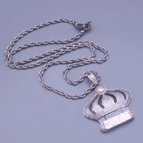Přívěsek z chirurgické oceli koruna KING, je poseta čirými zirkony.