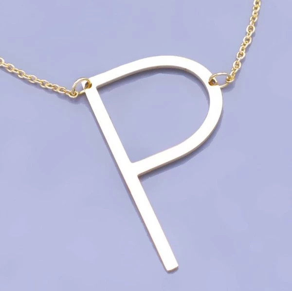 Zlacená písmeno z chirurgické oceli. Písmena zlatíme v ČR galvanizací 14kar. zlatem. Písmena které ve zlacené variantě nabízíme jsou A, B, D, E, H, I, J, K, L, N, P, R, S, V, Z Velikost písmen je 35x20mm, a jsou zavěšeny na zlaceném řetízku z chirurgické oceli o šířce 1,2mm a nastavitelné délce 45cm do 50cm. Zlacené šperky z chirurgické oceli není vhodné namáčet do saponátu, slané vody a jiných agresivních látek... PP01