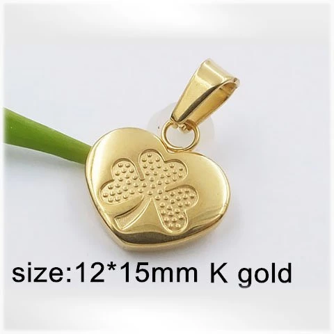 Zlacené srdíčko zdobené čtyřlístkem z chirurgické oceli Hmotnost: 3.2 g, 12*15mm, Zlatá PVD vrstva 3PP15168