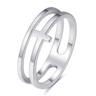 Dvojitý ocelový prsten s křížkem > varianta 57