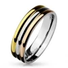 Snubní prsten z chirurgické oceli zdobený zlacenými pruhy Ocelový prsten je vyroben z chirurgické oceli s jakostním označením 316L Parametry materiál chirurgická ocel povrchová úprava lesklá, růžové zlato, žluté zlato šíře prstenu 6 mm typ prstenu snubní Vyberte variantu: 50 52 55 57 60 62